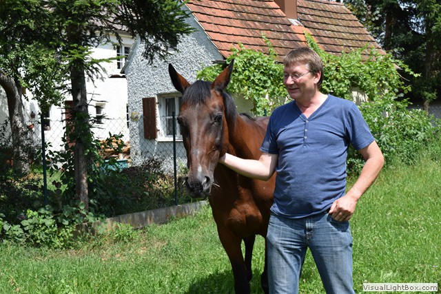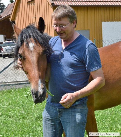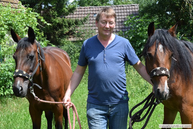 Zurzeit besitze ich eine 14-jährige Traberstute "Finni" und deren Sohn den mittlerweile einjährigen "Bubi". Als ich damals Finni bei mir aufnahm, wusste man allerdings nicht, dass sie tragend war, dadurch hat der liebe Bubi dann doch für einige Überraschung gesorgt. Bubi hat sich als richtiges Model entpuppt, was man am Titelbild der Homepage sehen kann. Bei den nachfolgenden Bilder war allerdings doch das Gras mal wieder sehr viel verlockender als die Kamera, aber man kann trotzdem einen guten Eindruck von den beiden gewinnen :)